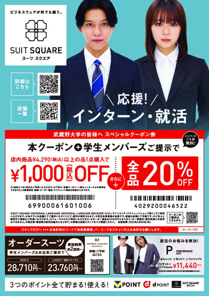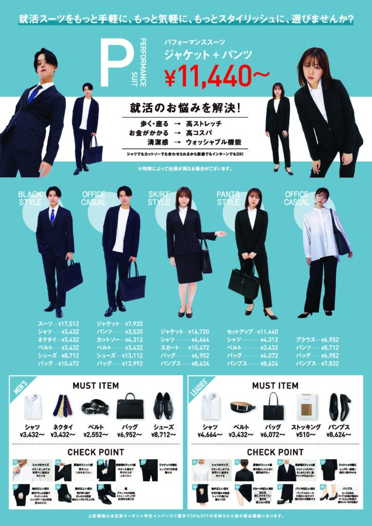このたび、スーツラインアップに、学生の皆さんにぴったりのブランド「SUIT SQUARE (スーツスクエア)」が仲間入りしました!