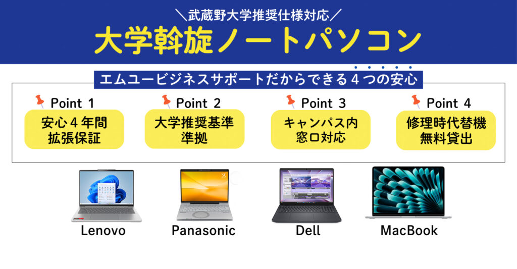 大学での学修に必須となる斡旋ノートパソコンの販売を開始いたしました。ご購入方法、製品仕様、各種サポートにつきましては、ノートパソコンのページをご確認ください。円滑な新生活のスタートに向け、最適な一台をぜひご準備ください。